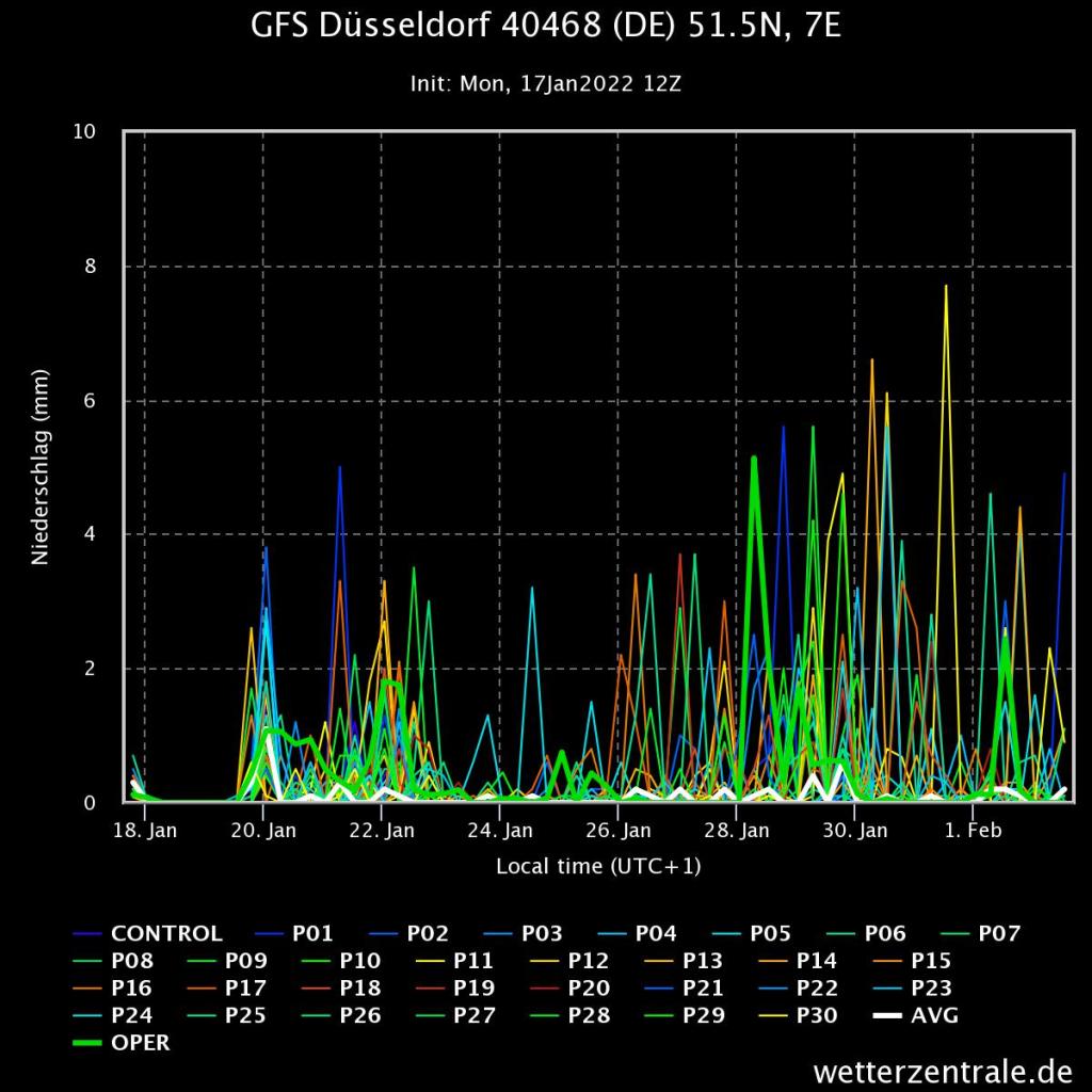 Und das Niederschlag dabei sein wird, scheint nach dem amerikanischen Wettermodell gerade recht wahrscheinlich. So zeigen fast alle Modelle etwas Niederschlag. Der erste Teil rund um den Tageswechsel des 20. Januars wird vermutlich noch als Regen fallen, spannender wird dabei eher die Nacht auf den 21. Januar.