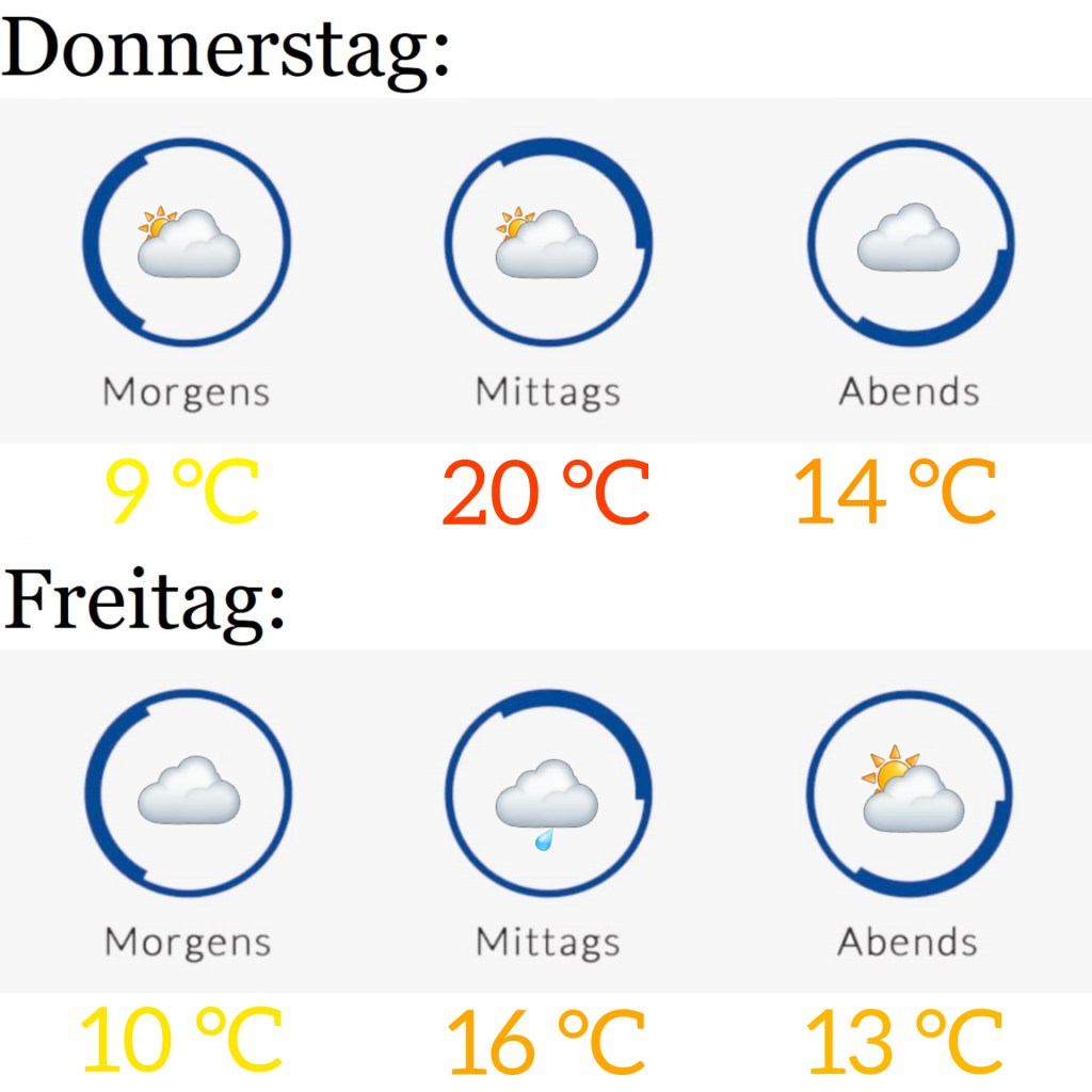 Die Wolken werden kompakter, es bleibt aber weiterhin mild. Zum Freitagmittag kann auch tatsächlich der eine oder andere Regentropfen fallen. Danach wird es etwas kühler.