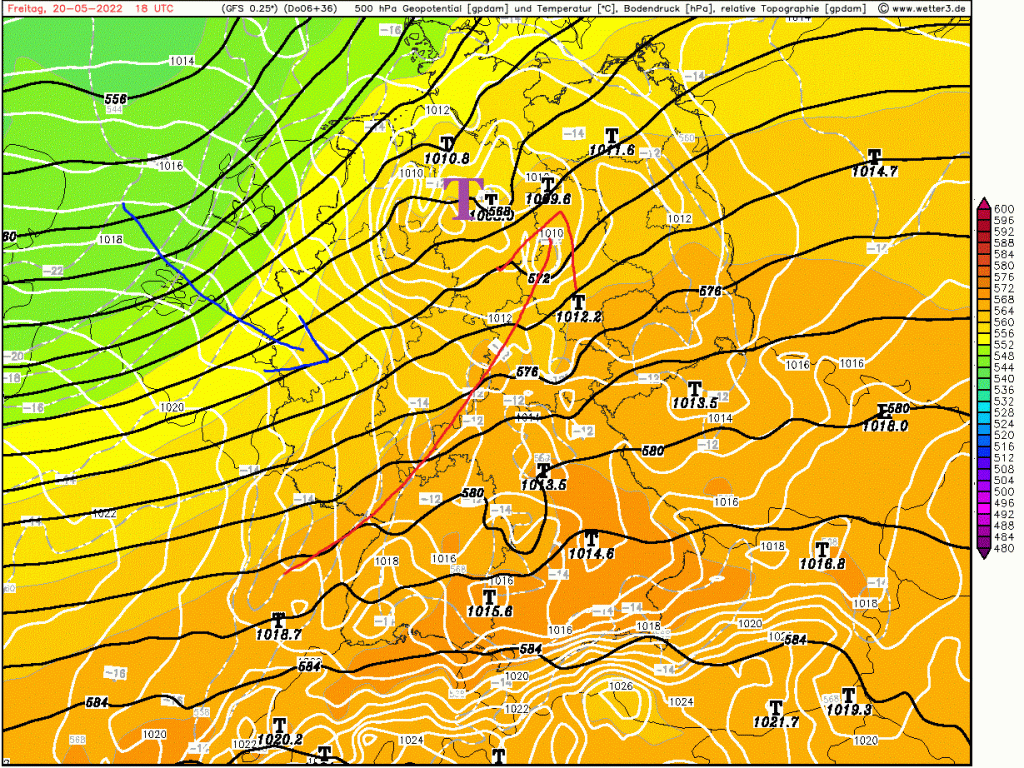 Im Vorfeld eines Tiefs über den britischen Inseln entwickeln sich in schwülwarmer Luft im Laufe der kommenden 36 Stunden viele interessante Konstellationen, die ordentlich Knallpotential haben. Diese werden wir uns einmal genauer anschauen, sodass wir die Wetterlagen im 6 bzw. 3 Stunden-Takt analysieren und daraus erkennen können, was genau uns erwarten kann.
