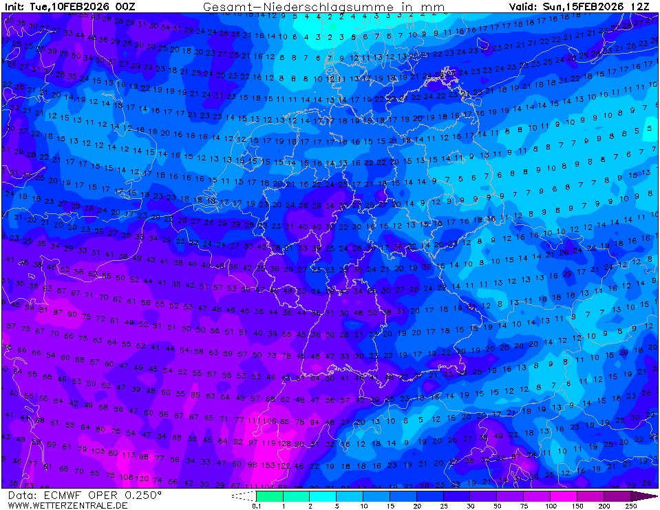 Dieser Luftmassenaustausch verläuft ebenfalls mit wenig Niederschlag ab, mickrige 3-4 Liter pro m² sollen laut dem ICON zusammenkommen.