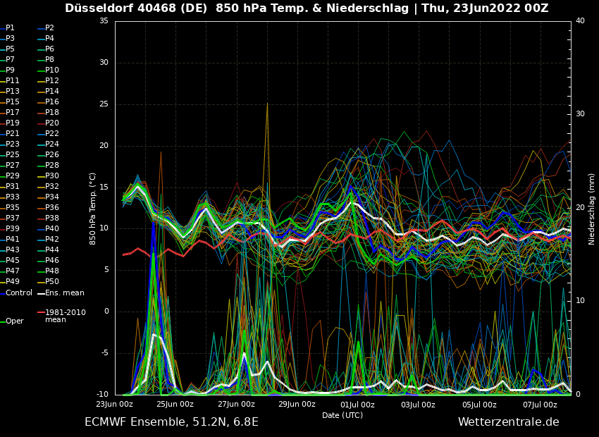 Wichtig ist hierbei häufig die dicke grüne und blaue Linie, die den Haupt- bzw. Kontrolllauf symbolisieren, die mit den besten Berechnungsgrundlagen ausgestattet sind.