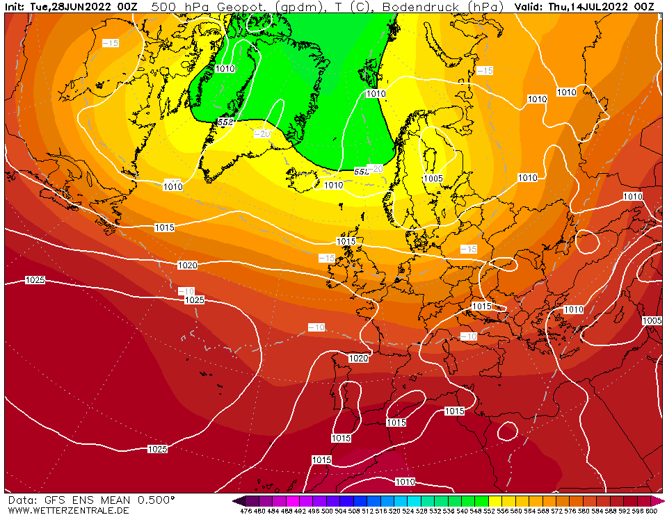 Viel Spekulation, aber was wir aktuell schon mal festhalten können: Der Hochsommer 2022, der ziemlich kühl und wechselhaft berechnet wird, könnte zumindest hin und wieder freundlich und angenehm temperiert werden aufgrund des Azorenhoch-Keils.