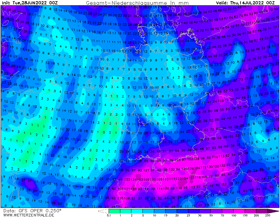 Und nachdem wir gestern noch verbreitet 15-30 Liter pro m² bei uns berechnet hatten, liegen wir heute bei mageren 2-5 Liter pro m². Ein neue Trockenphase könnte also nach den neuesten Prognosen durchaus beginnen, wo die alte trockene Phase gar nicht wirklich beendet worden ist.