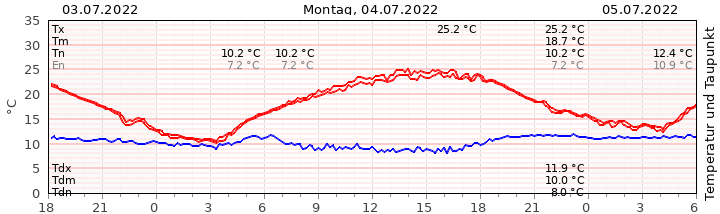 gestrige Temperatur in rot, Taupunkt in blau | Quelle: mtwetter.de