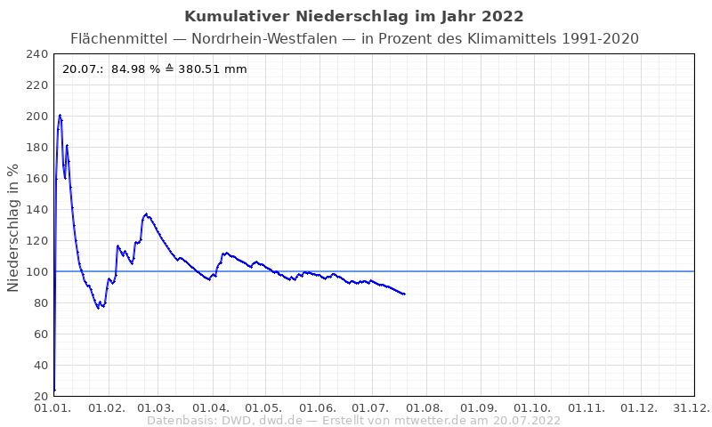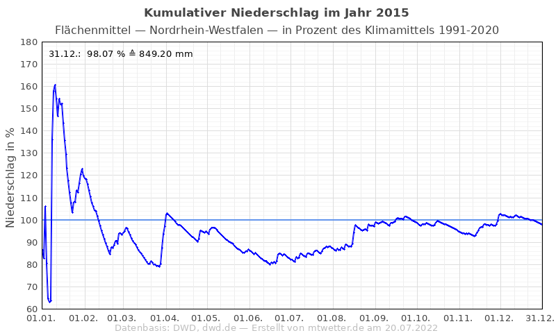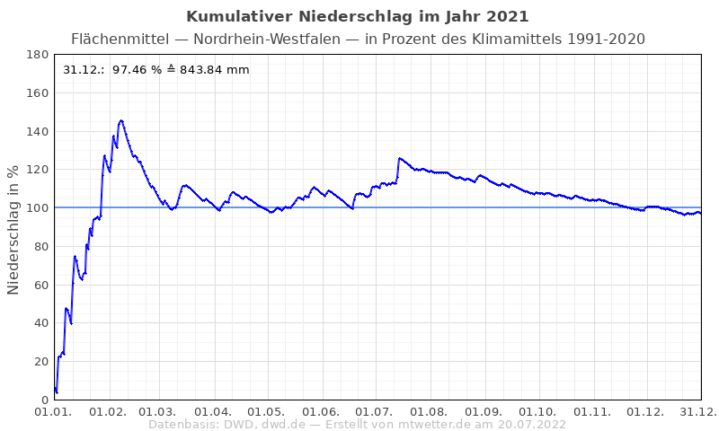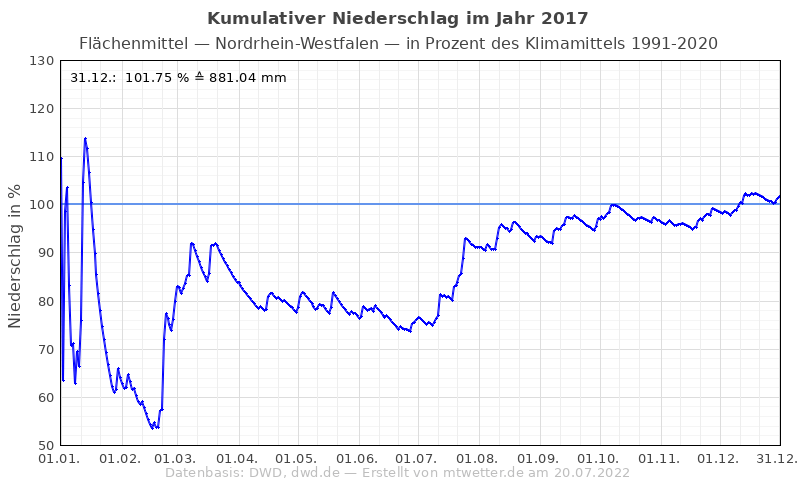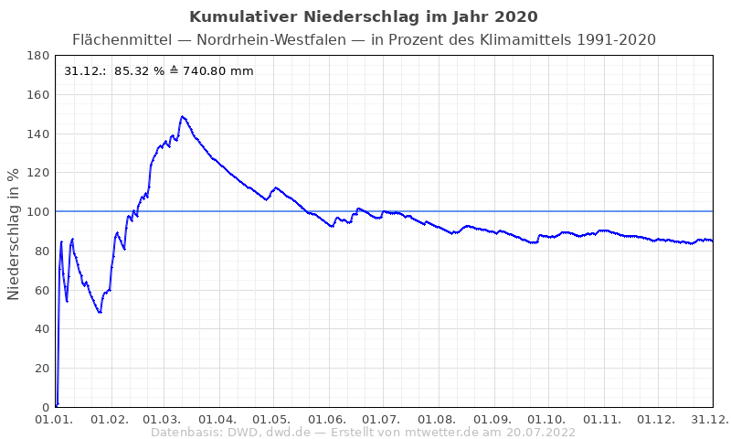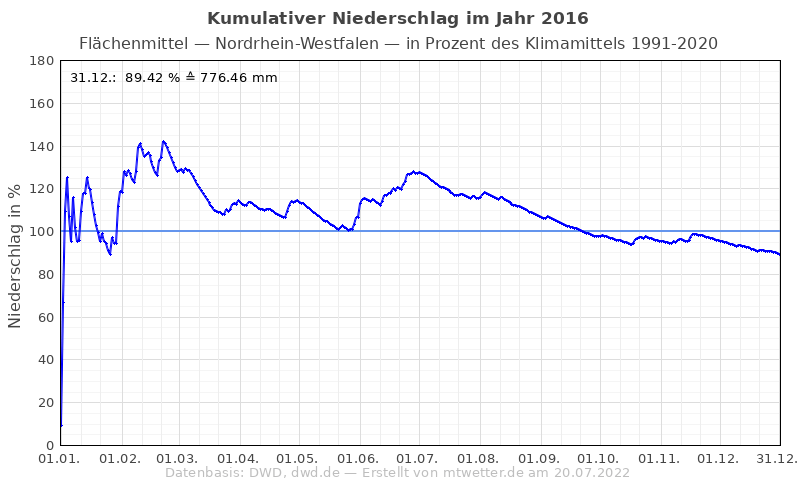 Nasses Jahr, deutliche Durststrecke von Mitte Juli bis Ende des Jahres.