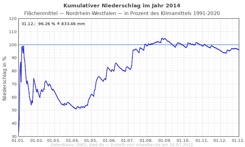 Das Jahr 2014 begann sehr trocken, wurde im Verlauf des Frühlings und im Sommers immer nasser.