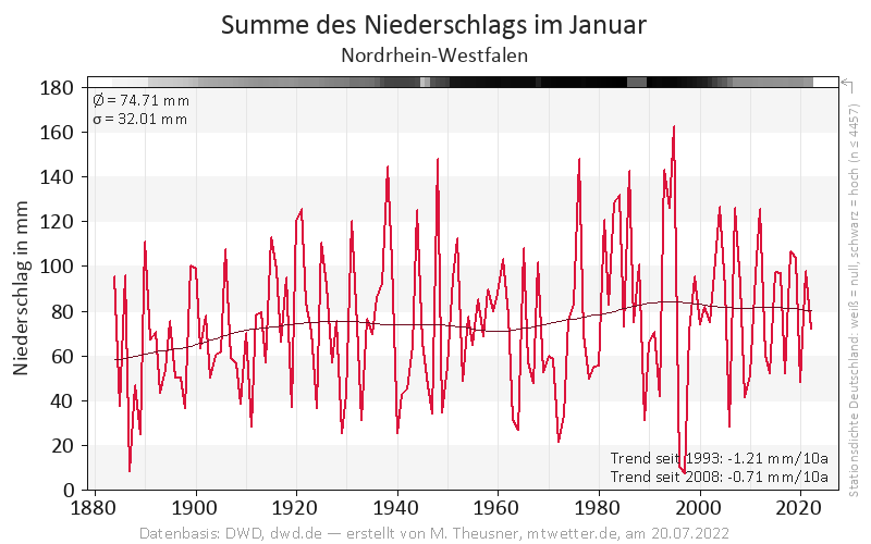 Der Januar ist relativ unauffällig, dort tut sich in den vergangenen Jahren recht wenig, der Rückgang der Niederschläge mit gut 0,85 % in 10 Jahren wenig ausschlaggebend.