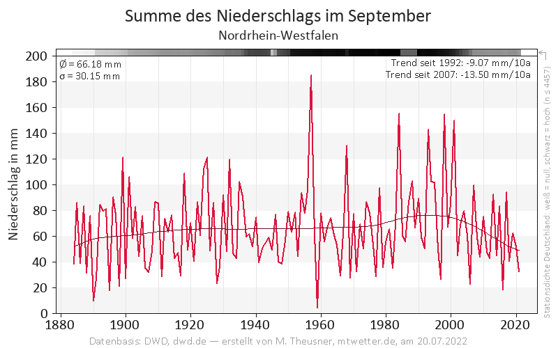 Und hier sprechen die Niederschläge eine eindeutige Sprache. Der Frühling (März, April, Mai) wird über die vergangenen Jahre immer trockener, der normalerweise auch eine Art Wasserspeicher bildet für die heißen Monate des Jahres, die durch Sonneneinstrahlung und Verdunstung viel Wasser verlieren. Der Juni alleine kriegt dies auch nicht aufgefangen, wenn die Monate Juli, August und September deutlich trockener werden. Gleiches gilt für den Oktober, der vom November direkt wieder ausgetrocknet wird. Und die Monate Dezember, Januar und Februar schaffen es alleine natürlich nicht, das ganze Jahr mit Wasser zu versorgen. Der Trend, der sich aktuell einstellt, dass wir in den Sommermonaten über Dürre, Wasserhaushalt / Wasserknappheit und Vertrocknung unserer Natur sprechen. Dazu komme ich aber morgen nochmal zu sprechen.