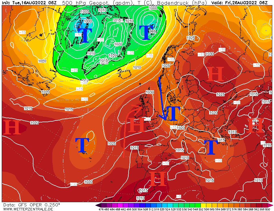 GFS macht ganz wilde Sachen zu Ende August, ansonsten sind die Wege weiter in Richtung Trockenheit geebnet.