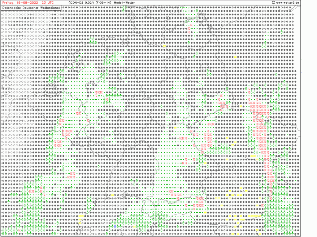 Wenn zu dem grünen Punkt noch ein Dreieck untergesetzt ist, deutet das auf Schauer hin.