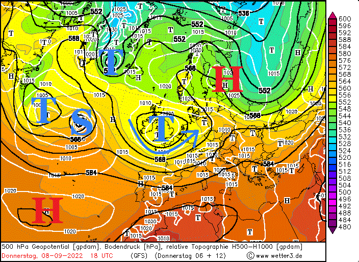 Die warme Luft aus dem Südwesten wurde nun nach Osten vertrieben und der Regen von heute Morgen hat kühlere Luft zu uns gebracht. Das Tief über dem britischen Inseln wird uns noch bis Samstag beschäftigen, wenn dann auch Höhenkaltluft für einen klassischen Schauertag sorgen wird. Hurrikan DANIELLE liegt weiterhin weit auf dem Atlantik, die Hochs haben sich von uns entfernt.