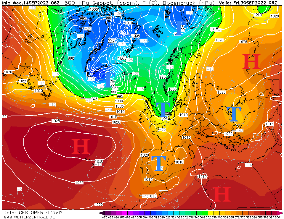Der Tiefdruck hat die Regie übernommen. Vom Ex-Hurrikan DANIELLE – aktuell über der Biskaya, hat sich ein Ableger-Tief auf den Weg nach Deutschland gemacht und an der Luftmassengrenze ein Dauerregenband über uns gelegt, wo wir auch darunter liegen. Die Hochs hingegen sind weit weg und dementsprechend ist ein trockener Abschnitt auch erstmal nicht in Sicht, was sich dann ab der nächsten Woche zwischenzeitlich wieder ändern dürfte.