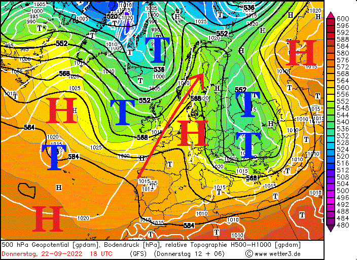 Ich möchte mich heute mal etwas aus dem Fenster wagen und den Spätsommer bereits für beendet erklären. Einfach mal ganz getreu dem Motto: „Ich wage mal etwas.“ So etwas mache ich schließlich sonst nie. Ich habe mir mal die Muster der Großwetterlagen über die kommenden 2 Wochen angeschaut und wenn wir uns mal den 7. Oktober zu Gemüte ziehen, dann stellen wir eines fest: Hochdruck ja, allerdings nicht mehr in der Form, die es bräuchte, um wirklich goldenes Oktoberwetter aufkommen zu lassen. Dafür müsste das Hoch nämlich zu uns ziehen, was es tut. Aber, es müsste von Tiefs westlich und östlich flankiert werden, was nicht der Fall ist. Dafür ist die Tiefdruckzone über Nordeuropa schon zu stark ausgeprägt und auch das Azorenhoch lässt gar nicht mit sich reden. Höchstens gibt es, wie es in der aktuellen Berechnung zum 7. Oktober, ein Keil zu uns. Bei dieser Wetterlage würden wir allerdings einfach nur auf der kühlen und feuchten Seite des Hochs versauern. Und ich sehe aktuell auch keinen Grund, warum sich das im Oktober ändern sollte. Das CFS, der langfristige Bruder des GFS, berechnet im Übrigen genau diese Wetterlage, die es für goldenen Oktober bedarf, für den 26. Oktober, für 2 Tage. Wir können gespannt sein.