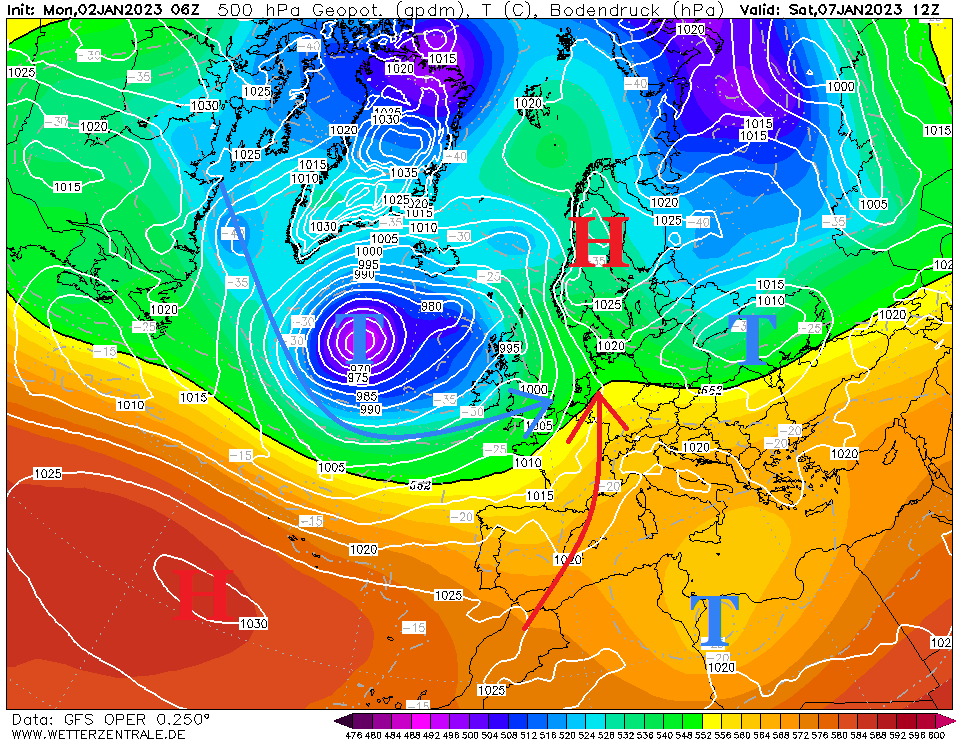 Beim Blick auf die Wetterlage zum kommenden Samstag werden zwei Dinge relativ deutlich. Zum einen, dass der Atlantik weiter vorherrschend für unser Wetter sein wird und somit auch das wechselhafte und vor allem milde Wetter uns weiter treu bleiben wird. Zum anderen, dass dieser Tiefdruck aber auch nicht so richtig durchbrechen will, der über Nordwesteuropa liegt, weil sich häufiger ein Hoch über Skandinavien zwischenschiebt. Deshalb bleiben wir bei dem zeitweise windigen, aber wechselhaftem Wetter und es scheint sich erstmal nicht viel dran zu ändern.