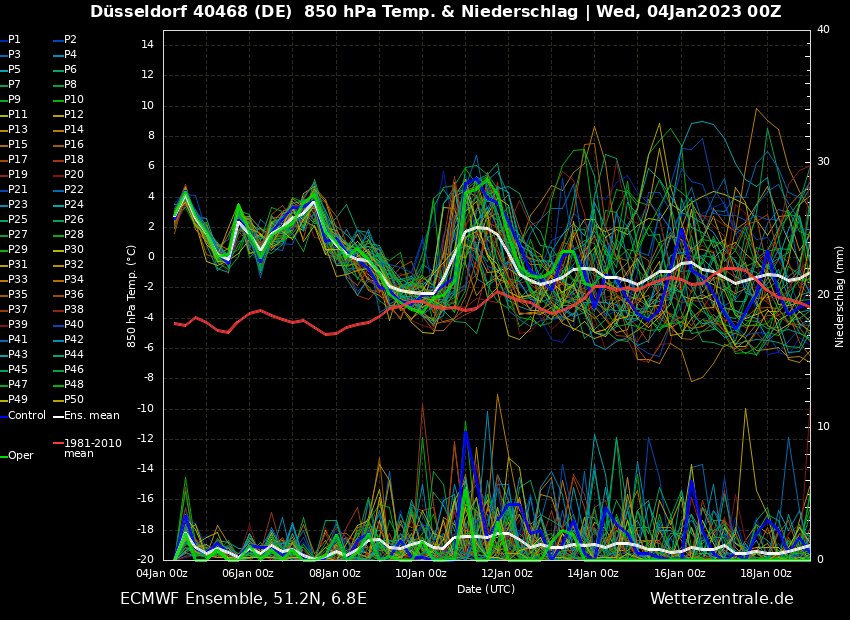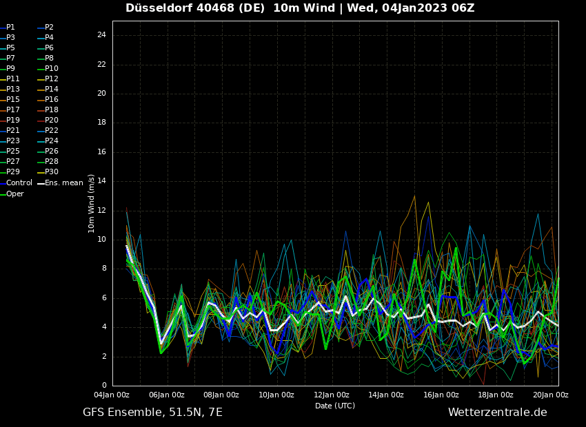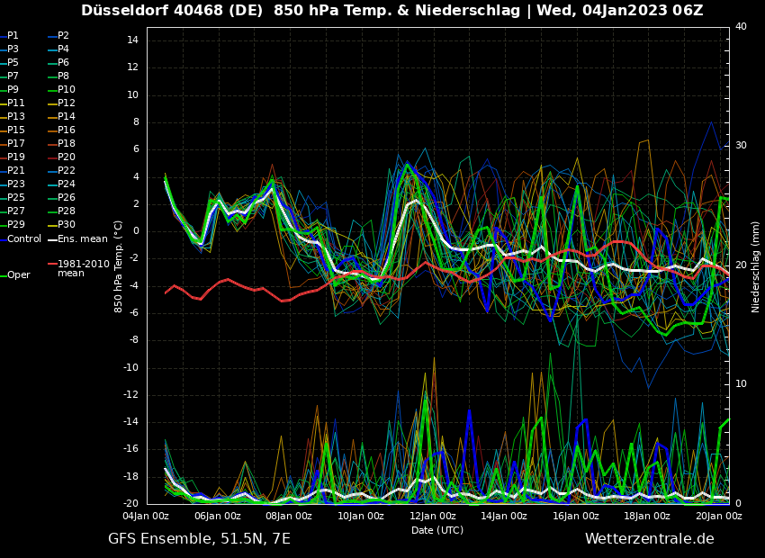 In welche Richtung das GFS möchte, wird noch nicht so ganz klar. Beide Szenarien sind dort breit abgebildet. Diese Sturmlage wird möglicherweise über den 17. Januar hinaus gehen, vor allem, weil auch der Hauptlauf durchgehend Niederschläge bis zum 20. Januar berechnet.