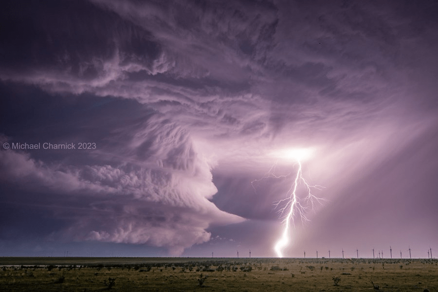 Am vergangenen Freitag kam es im Südwesten der USA zu schweren Unwettern. Dazu sind Superzellen entstanden, also große Gewitter mit eigener Rotation, die neben gewaltigen Fallböen auch Tornados produzieren. Dazu mal ein Bild, was Michael Charnick auf Twitter veröffentlicht hat.