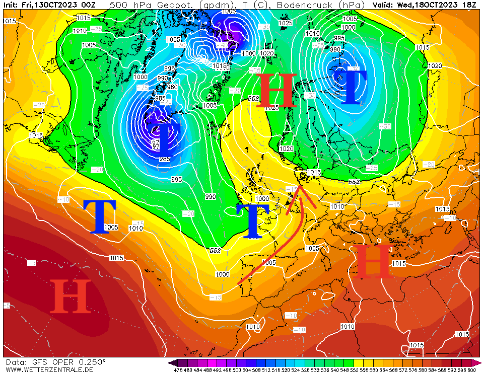 Kurz zur Verteilung: Tiefs über dem Atlantik, vor der Bretagne, bei Grönland und Russland. Hochs einerseits auf dem Atlantik südwestlich der Azoren, Hoch über dem Mittelmeer und Hoch über dem Nordmeer. Zwar liegen wir damit am Rande des Hochs auf seiner Südostflanke, womit Bodennah kühlere Luft zu uns sickern würde, von Südwesten her kommt aber gleichzeitig warme Luft mit dem Tief vor der Bretagne zu uns. Das ist so eine Misch-Wetterlage, die uns keinen Spaß bereiten wird. Damit gibt es bei Tiefdruckdurchzug Regen, durch schleifende Fronten auch mal etwas mehr, ansonsten viel Hochnebel-Suppe und äußerst trüb zu der Jahreszeit. Aber: Damit wäre der Nachtfrost vom Tisch. Das werde ich weiter im Blick behalten und am Montag mal schauen, was die neuesten Modelle so bringen. Bis dahin ein schönes Wochenende!