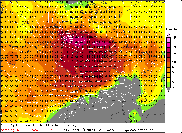 Dabei ist es zwar auch immer wieder windig, aber ein wirklicher Herbststurm steht dabei erstmal nicht an. Aber: Zum Monatswechsel soll die Sturmgefahr so allmählich ansteigen, gerade der aktuelle Hauptlauf berechnet ein Orkantief zum Samstag nächster Woche mit Windspitzen von über 110 km/h, teils bis 125 km/h im Münsterland. Das ist erstmal nur eine Einzelberechnung, aber das behalten wir mal im Auge.