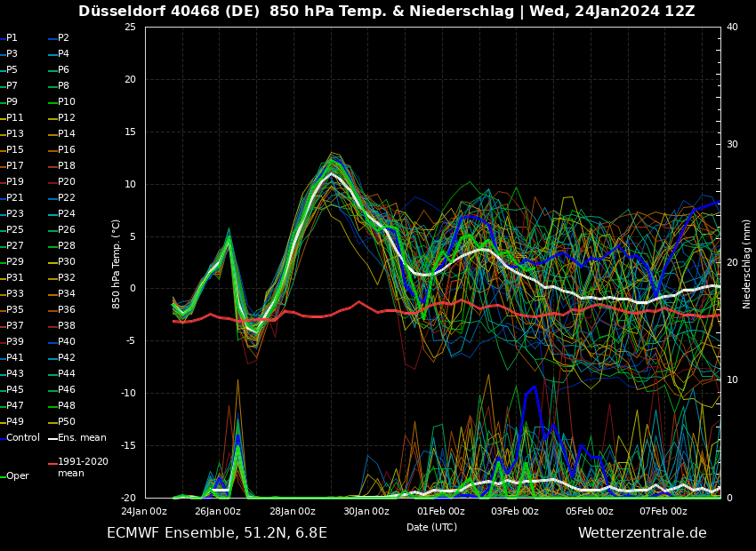 Wichtig ist hierbei häufig die dicke grüne und blaue Linie, die den Haupt- bzw. Kontrolllauf symbolisieren, die mit den besten Berechnungsgrundlagen ausgestattet sind.