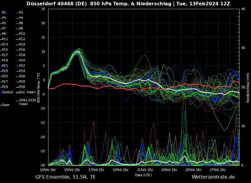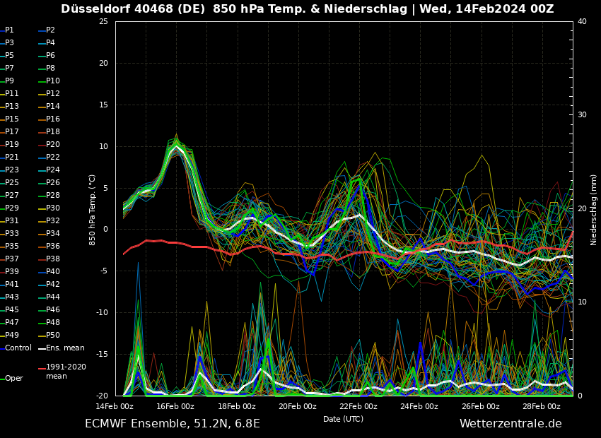 Das ECMWF ist da nur leicht anderer Meinung. Gerade im Hinblick auf den 22. Februar sollen die Temperaturen nochmal kurz deutlicher ansteigen, außerdem sollen die Niederschläge in Richtung Ende Februar deutlich aktiver sein.