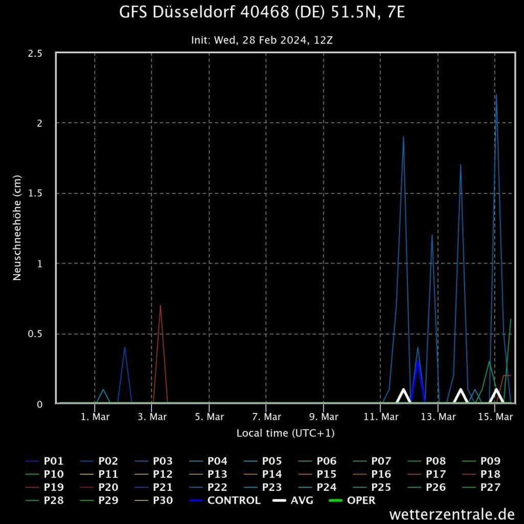 Vervollständigt wird dieser Trend von den Schneehöhen, die wir im Prinzip vernachlässigen können. Da wird kaum Schnee berechnet und damit würde ich es auch erstmal damit belassen. Morgen schaue ich mal, was es noch darüber zu spekulieren gibt.