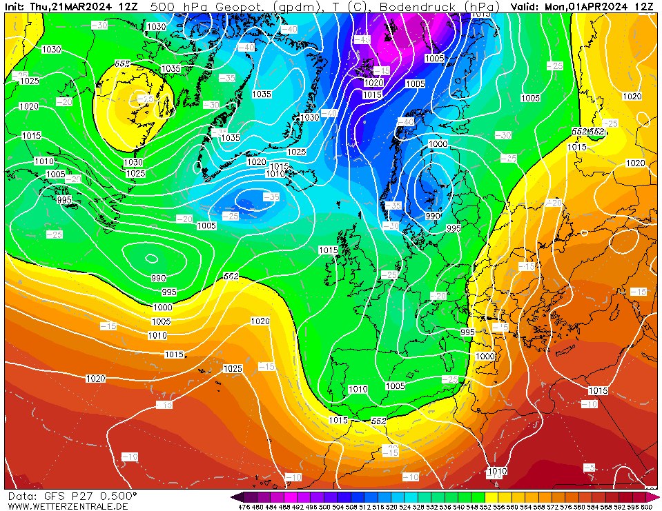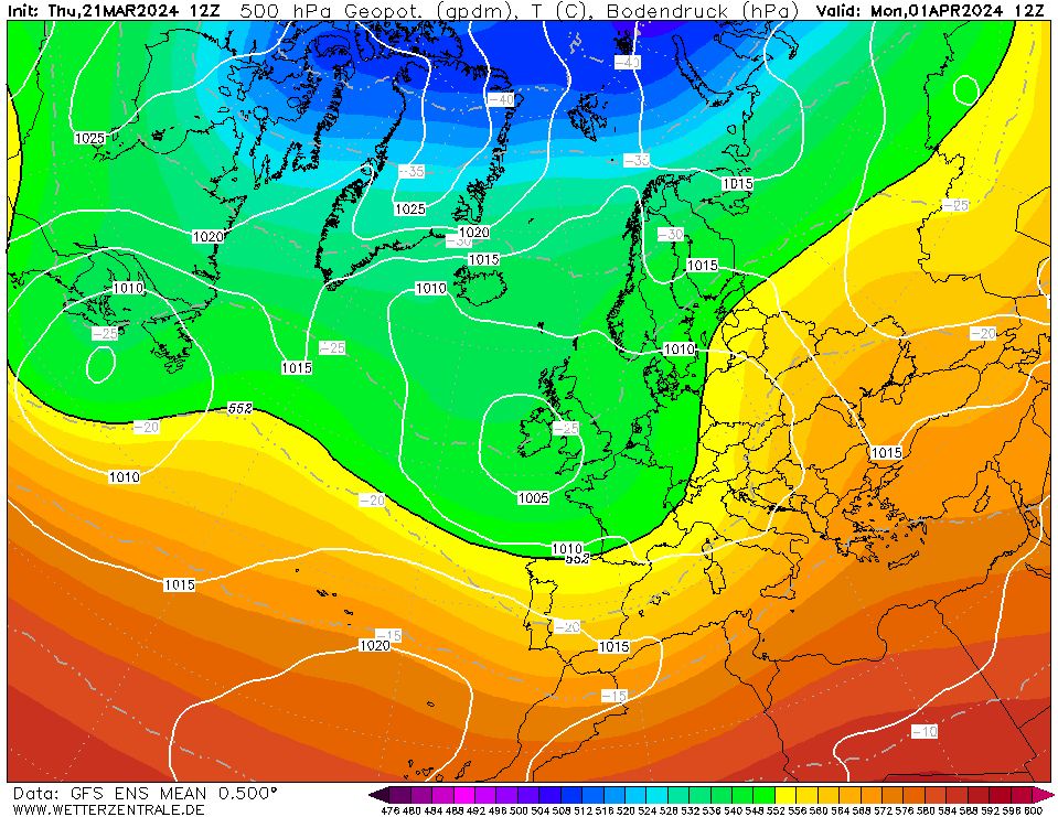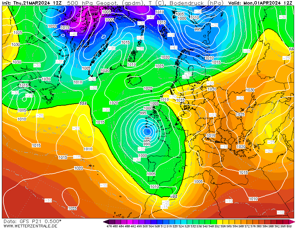 Der wärmste Lauf mit dem schönen frühsommerlichen Wetter ist zwar noch in den Modellen vorhanden, aber nur ganz vereinzelt und damit eher unwahrscheinlich. Das Modell 21 des GFS hat so eine Paradeberechnung für Frühsommer für Anfang April, aber das ist aktuell nur schön anzuschauen und nicht sonderlich wahrscheinlich.