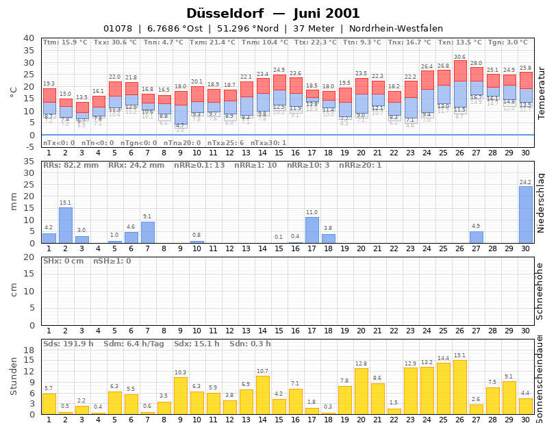 Der Juni 2001 tat sich ebenfalls lange schwer und brachte immer wieder Regen, die Temperaturen lagen gemittelt bei 15,9 °C.