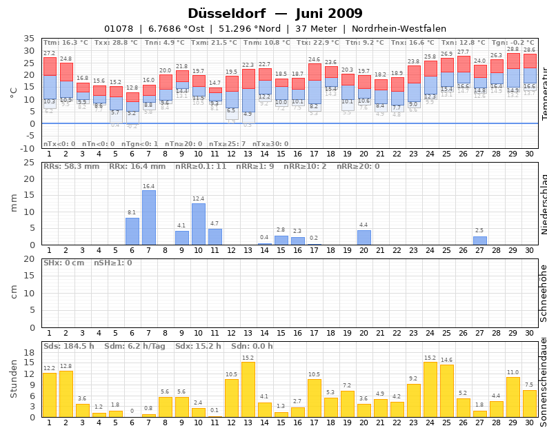 Der Juni 2009 war in der „jüngeren“ Vergangenheit ein kalter Ausreißer mit einer Mitteltemperatur von 16,3 °C. Es war ein phasenweise nasser und trüber Monat.