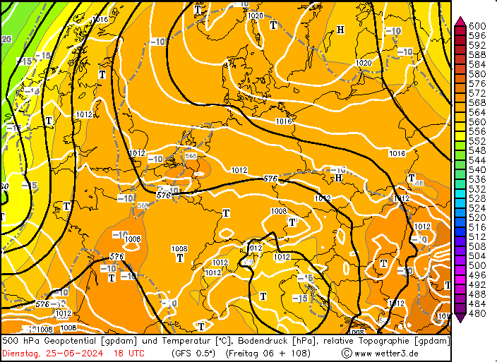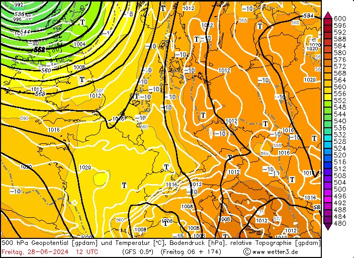 Die Wärme wird dann bis zum Freitag vollständig nach Osten ausgeräumt werden und damit kehren wir auch wieder in das altbekannte Schauer- und Gewitterwetter zurück. Der Austausch der heißen Luftmasse von Mittwoch mit einem ersten Übergang nach Donnerstag und einem zweiten Übergang zum Freitag wird dann auch wieder mit viel Regen begleitet werden, rund 30 Liter pro m² berechnet der aktuelle Hauptlauf des amerikanischen GFS mit seinem 6er Lauf. Am oberen linken Rand über Großbritannien lauert derweil schon ein weiteres Tief.