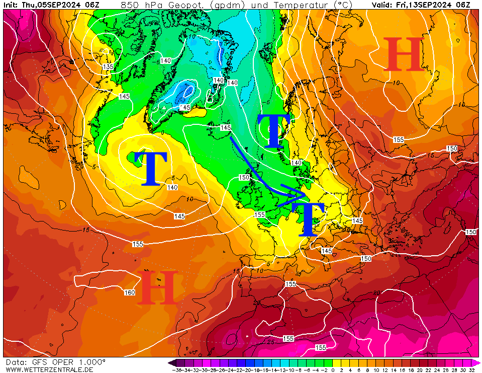 Der Trend wird sich bis zum Wochenende fortsetzen, sodass uns immer wieder Regen und absinkende Temperaturen erreichen. Bis zum Freitag in einer Woche werden die Temperaturen in 1.500 Meter Höhe auf unter 0 °C sinken. Die 20 °C, die wir derzeit nur in der Nacht überqueren, die werden wir in rund einer Woche mit Abstand von unten betrachten. Die Tageshöchstwerte gehen mit Regen teilweise auf unter 15 °C zurück. Und ist der Boden und die Atmosphäre bei uns erstmal mit Feuchtigkeit so derart abgekühlt, braucht die Wärme aus dem Süden deutlich länger, bis sie sich richtig bis zum Erdboden etablieren kann. Dazu braucht es dann viel Sonne und Wind, beides in Kombination mit Wind aus dem Osten oder Süden kommt zwar vor, durch den zurückgehenden Sonnenstand wird aber auch das Temperaturniveau über Osteuropa nun zurückgehen. Nicht, dass es keine warmen Tage mehr in diesem Jahr geben wird, aber weit über 25 °C und teils über 30 °C, das wird nun äußerst schwer. Der Sommer, er geht zu Ende. Der Herbst, er kommt.