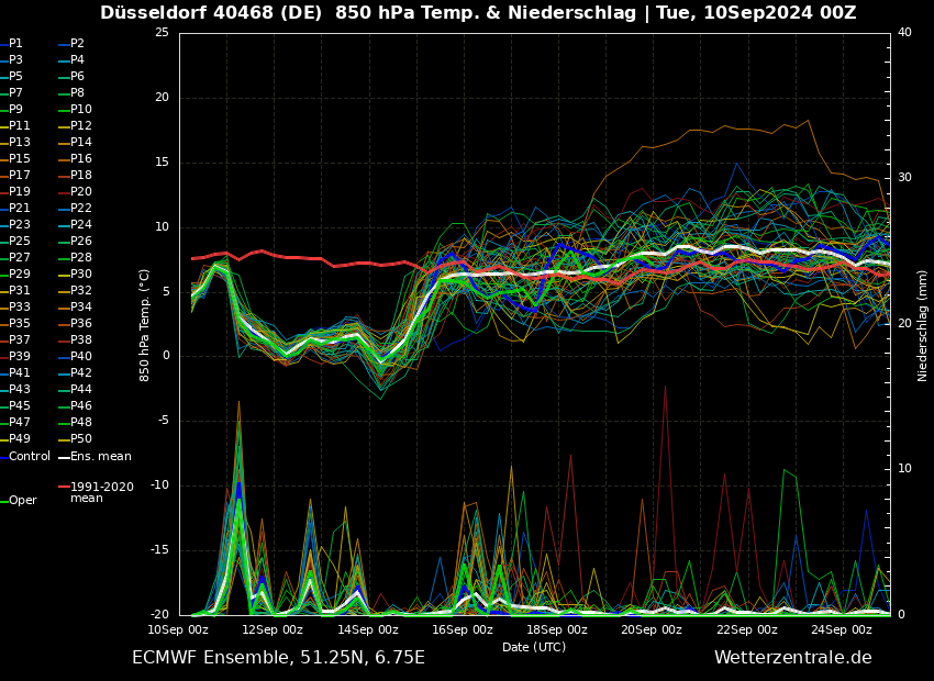 Wichtig ist hierbei häufig die dicke grüne und blaue Linie, die den Haupt- bzw. Kontrolllauf symbolisieren, die mit den besten Berechnungsgrundlagen ausgestattet sind.