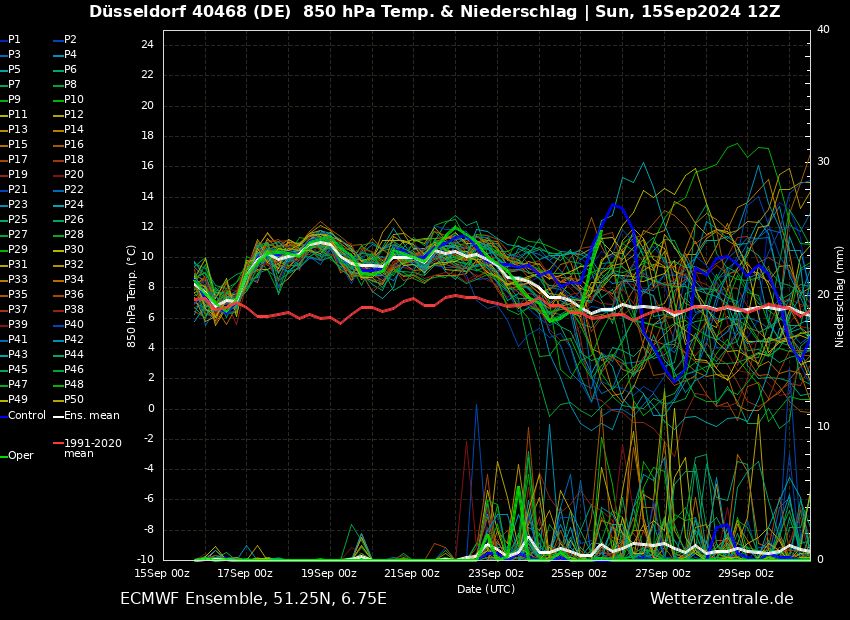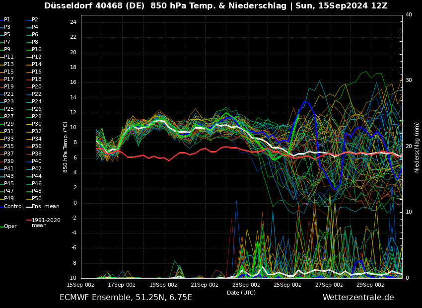 Wichtig ist hierbei häufig die dicke grüne und blaue Linie, die den Haupt- bzw. Kontrolllauf symbolisieren, die mit den besten Berechnungsgrundlagen ausgestattet sind.