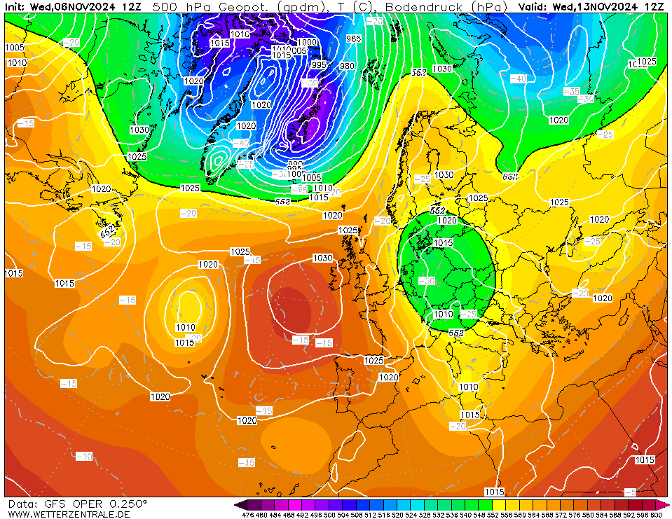Derzeit arbeiten die Modelle an einem ersten Frühwintereinbruch rund um die Monatsmitte. Der Hauptlauf des amerikanischen GFS bastelt dabei an einer Lösung mit einem Höhentief genau über uns mit einer -30 °C Isotherme in 5.500 Meter Höhe, die uns Graupelschauer bringen könnte. Am Boden ist das Tief bereits im Mittelmeer angekommen und wird dort für viel Regen sorgen. Im weiteren Verlauf soll sich dieses Höhentief in Richtung Norditalien bewegen und dort mit Wasser vollsaugen, um dann in den Alpen viel Schnee und bei uns Restfeuchtigkeit zu bringen. Das ist derweil eine gewisse Modellspielerei, denn der Vorlauf brachte einen Trog mit Wind und Regen sowie kühlen Temperaturen aus Nordwest, der Vorlauf davor brachte wieder die Kaltluftschüssel in 5.500 Meter Höhe, wie der aktuelle 12er Lauf eben auch. Bei allen 3 Läufen würde es in Richtung übernächstes Wochenende Temperaturen in Richtung -5 °C in 1.500 Meter sorgen, was dann einstellige Werte für uns und bei aufklarendem Himmel Nachtfrost bedeuten würde.