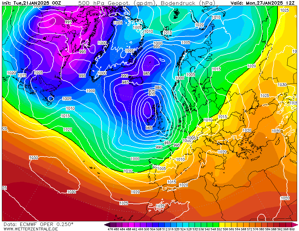 Am Samstag gehen die Modelle etwas auseinander. Das GFS lässt uns im Vorfeld eines neuen Tiefs nochmal windige 7-12 °C mit hohen Wolkenfeldern und Regen in der Nacht erleben, das ECMWF bringt das Tief südlicher und uns auf der Nordseite mit einer Luftmassengrenze und Regen bei ruhigeren 7 °C.