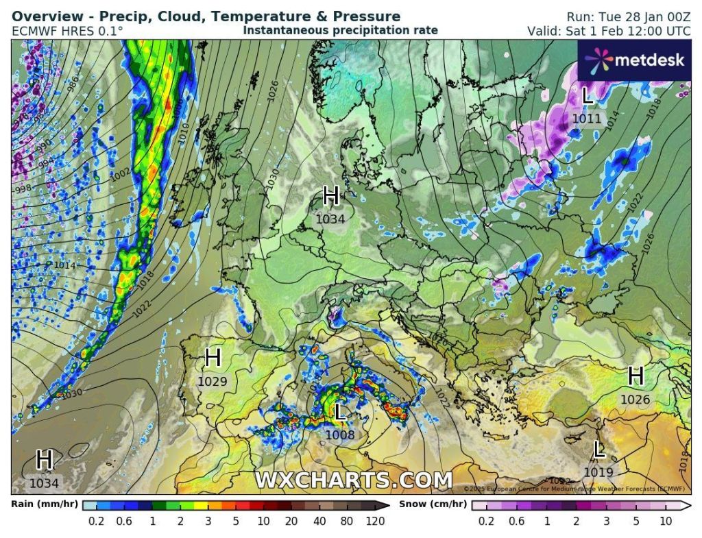Und es geht weiter mit den Spielereien der Modelle hinsichtlich dem Start in den Februar, dem letzten meteorologischen Wintermonat. In der Vergangenheit habe ich immer wieder von einem neuen Hoch gesprochen, welches sich in Richtung Südskandinavien bewegen könnte. Das ist wieder rausgerechnet worden und nun soll das Hoch von der Nordsee (Momentaufnahme Samstag, 13 Uhr) über Deutschland nach Südosteuropa ziehen. Ab Mitte der nächsten Woche wird das Hoch dann abgezogen ein und dann soll wieder der Tiefdruck übernehmen. Auch das war im Ensemble des ECMWF abgebildet. Danach würde ein neues Hoch folgen, auch das bereits erwähnt. Dieses Hoch dürfte dann aber deutlich mehr Nebel & Hochnebel bringen. So viel die Theorie.
